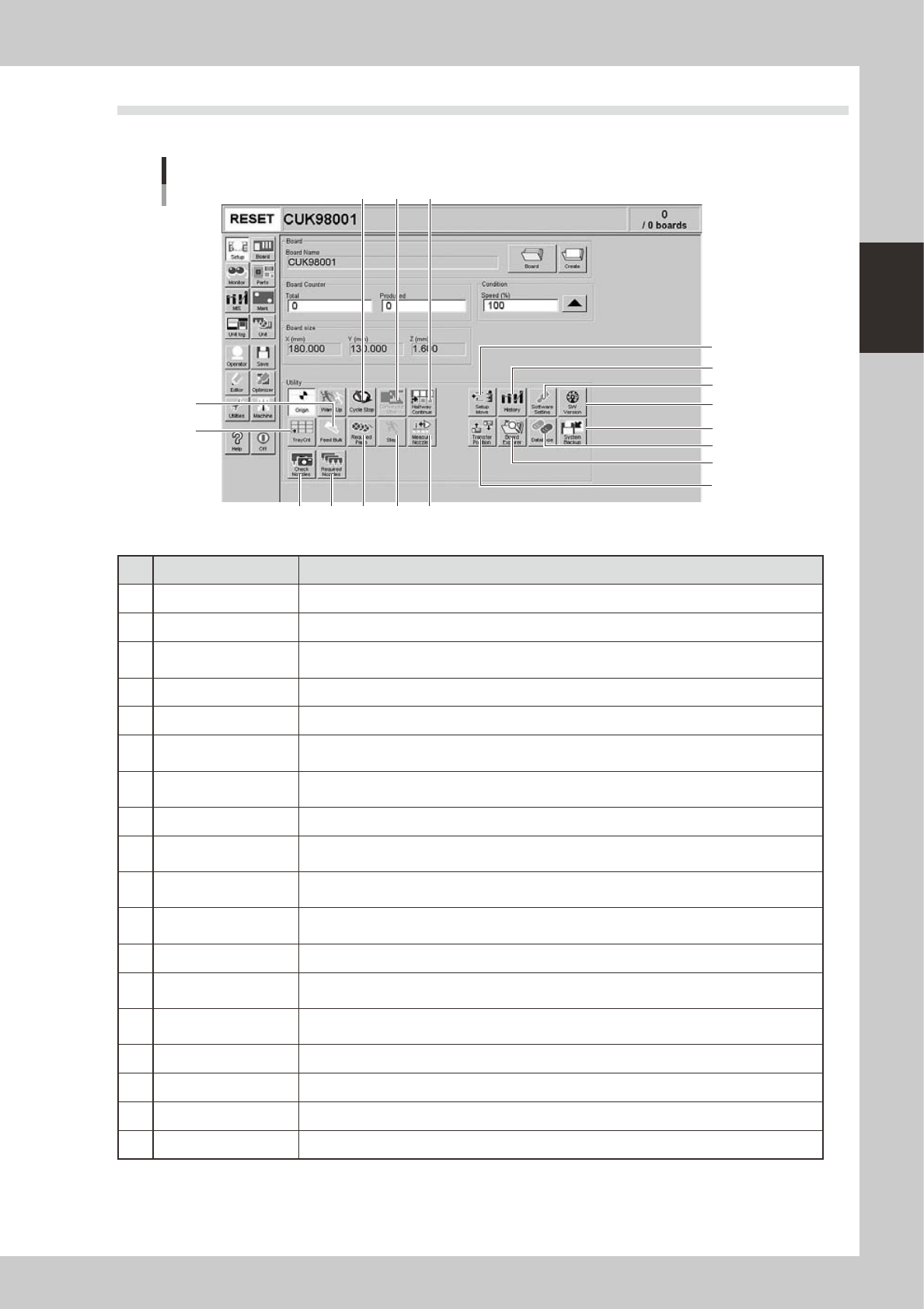 1 Setup Move Moves the head to the front left position, and the stage to the component placement position.