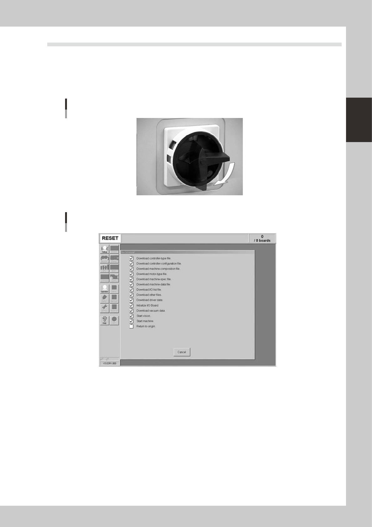 system has started, the Initialization screen appears and the program necessary for machine operation