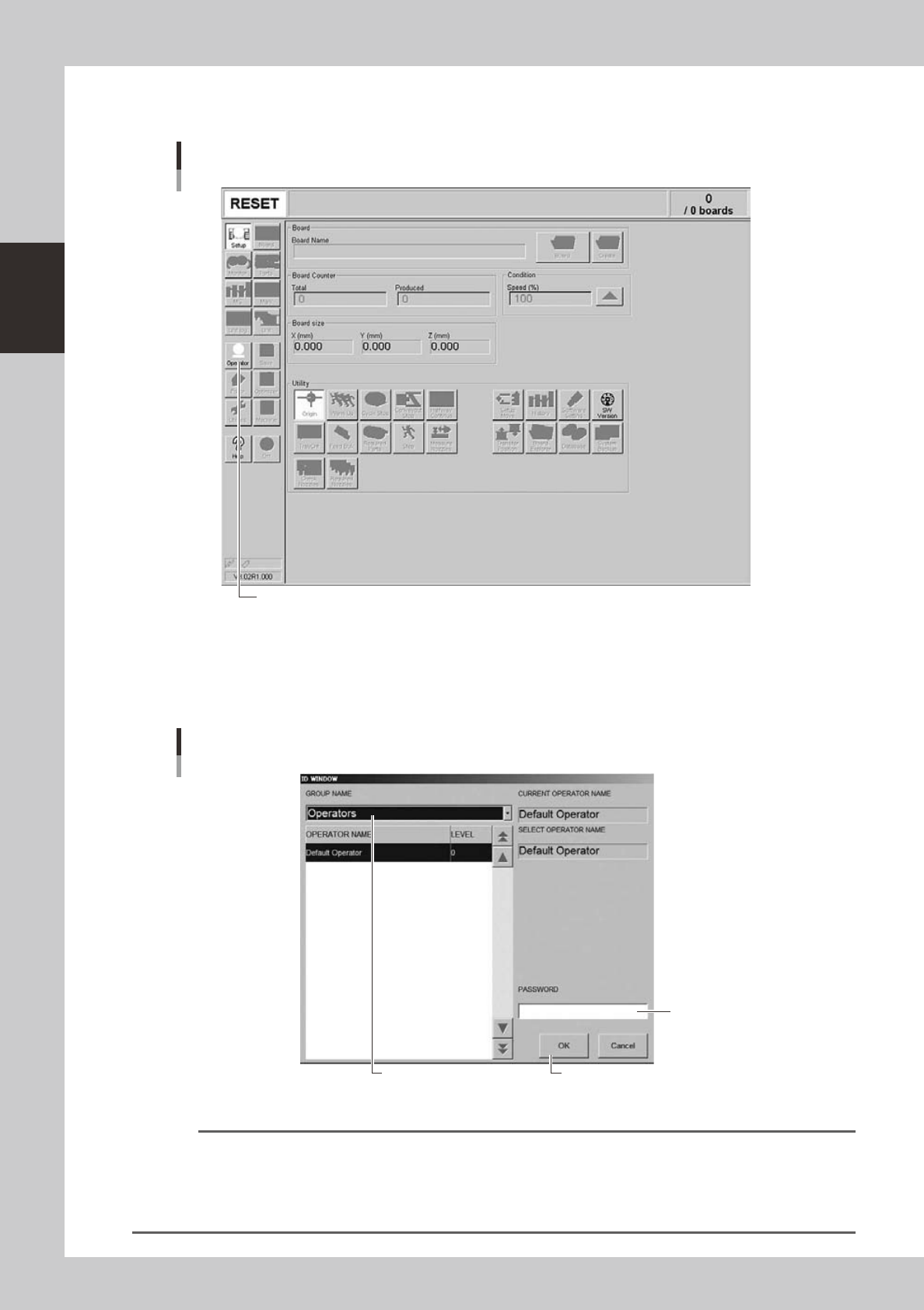 needed. Operators and operation items can also be added and specified by setting the password and operation