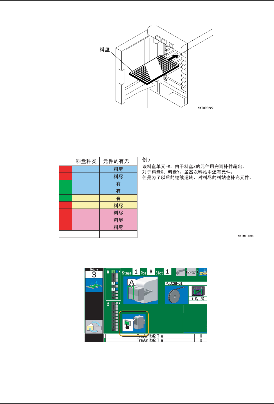 a. 此时,不仅是出现停止原因的料槽,对于其他的料槽,如果料尽,也请设置新的料盘。