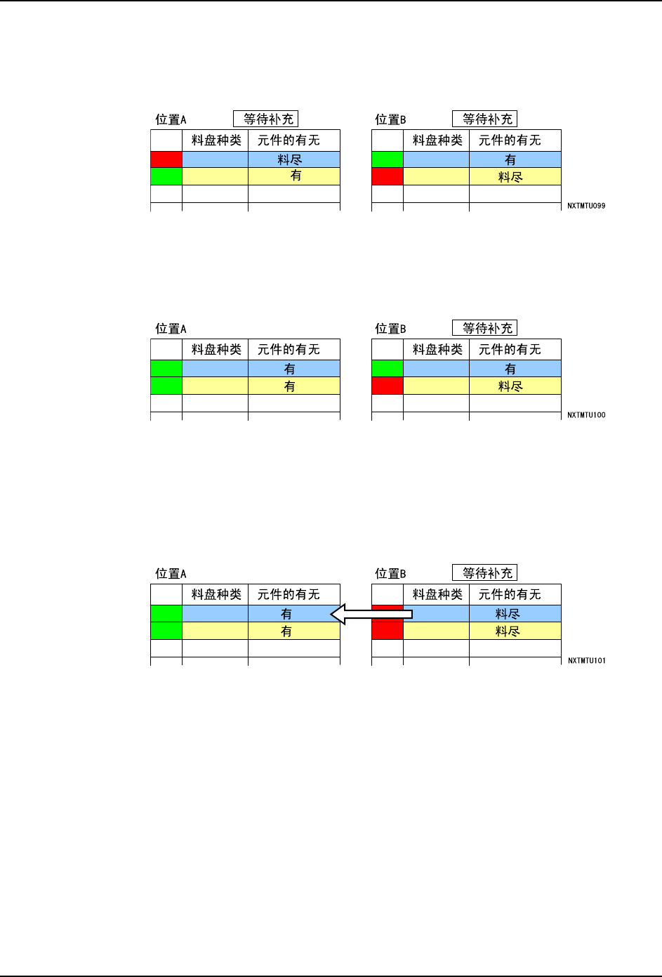 备注 )上表表示位置 A 先发生料尽,并进行了补充的情况。