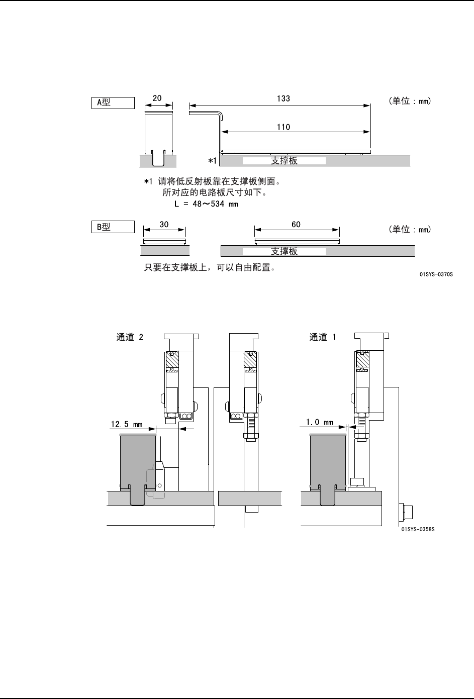在通道 2 中,安装时请不要遮住支撑销检测传感器的光轴。如果遮住了光轴,受光侧传感器