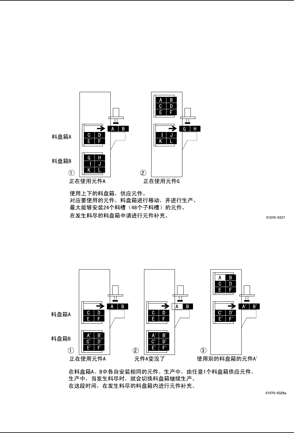 备注 )上图说明了将料盘箱 B 作为补充用料盘箱的情况,通过辅助软件的机器功能设定,也