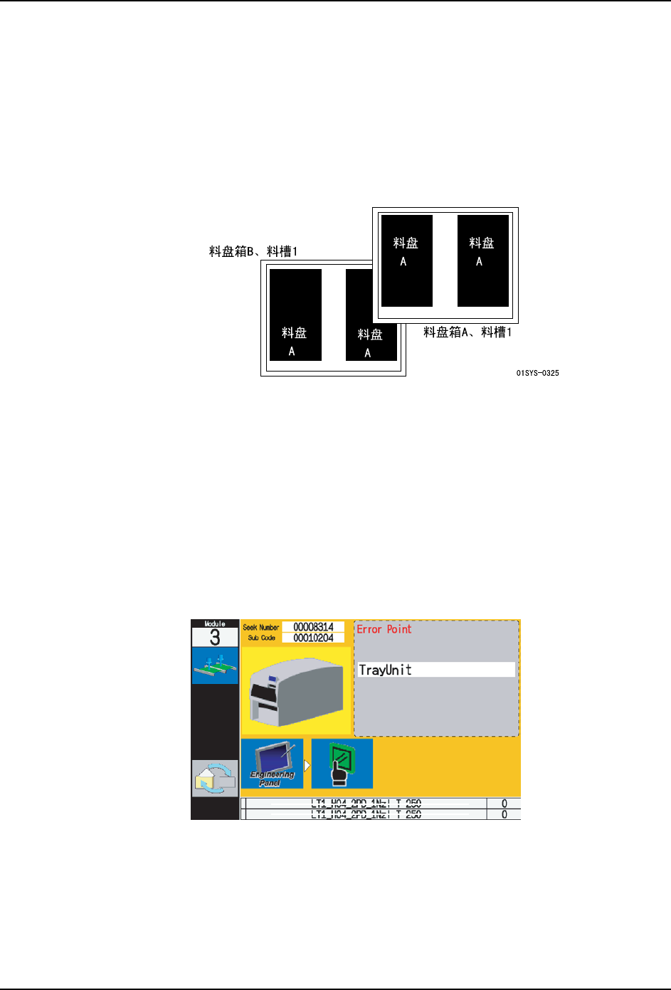 盘箱 B 的退避料槽,因此,另一个料盘出现尚未用完的元件。