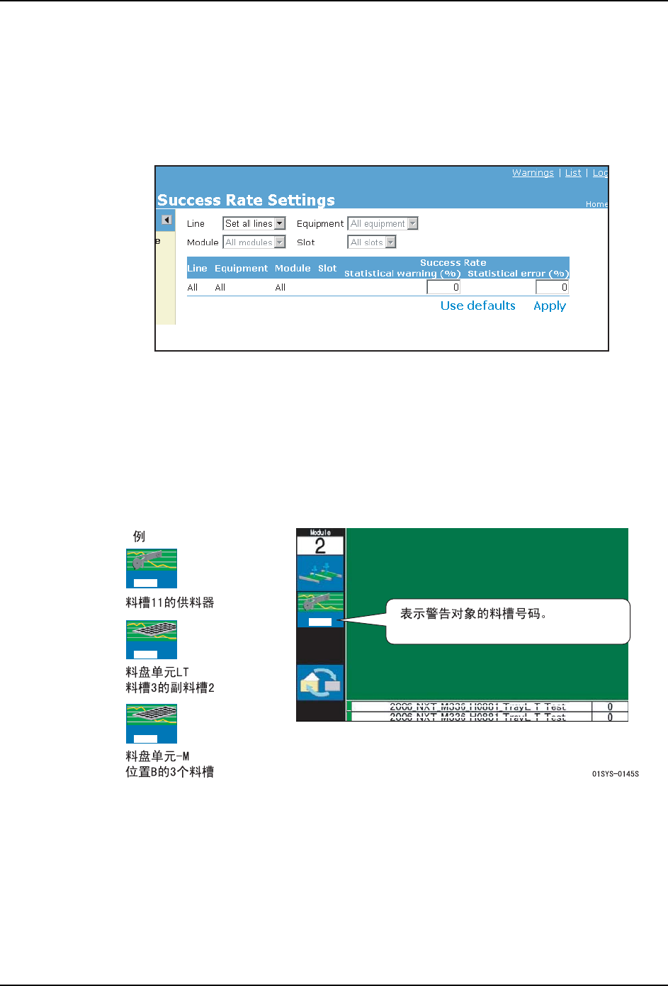 1. 在辅助软件的 [Success Rate] 画面上,请进行料站统计异常的设定。