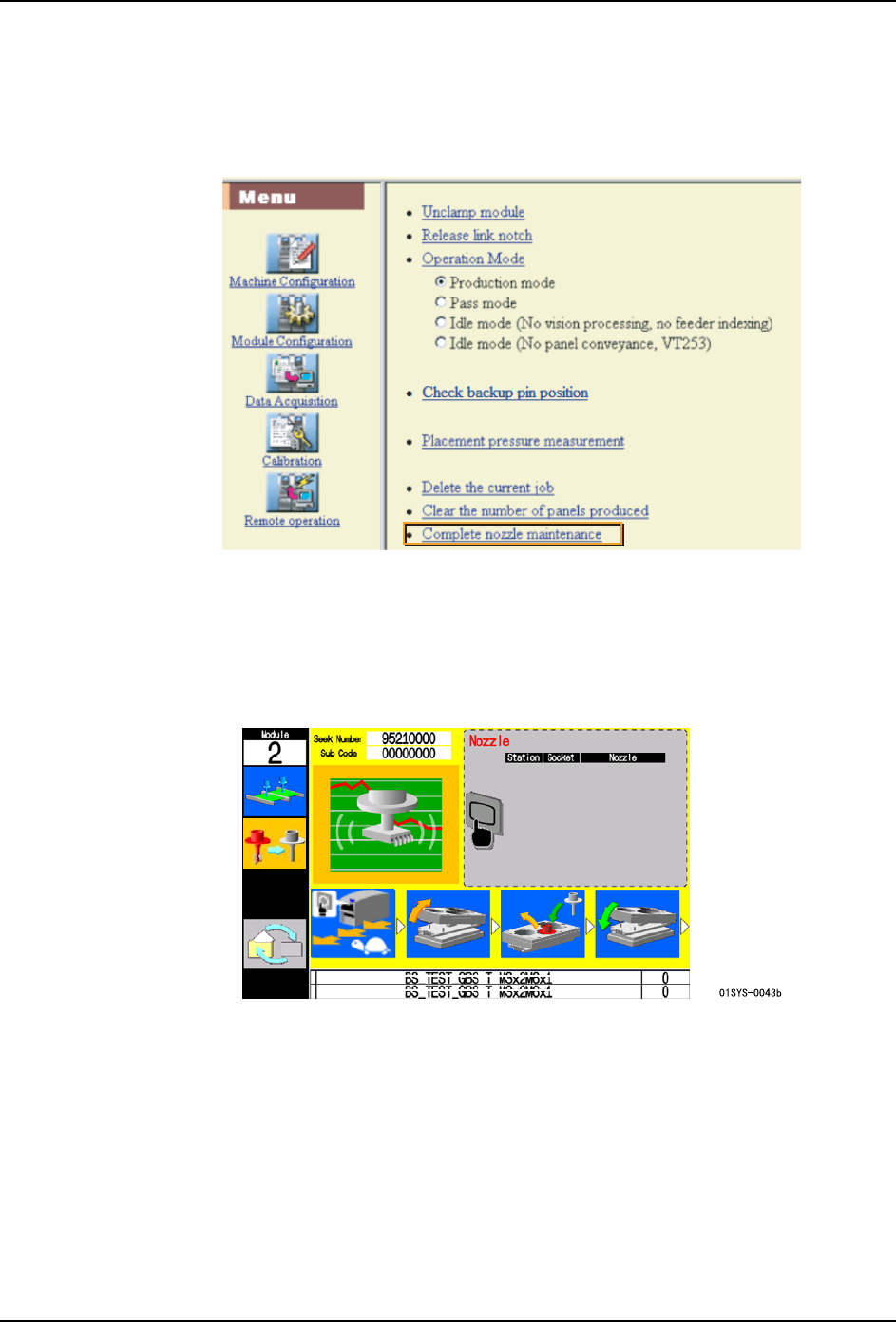 生产中,如果吸嘴置放台内没有预备吸嘴,机器显示以下的画面并停止。请在进行了吸嘴的