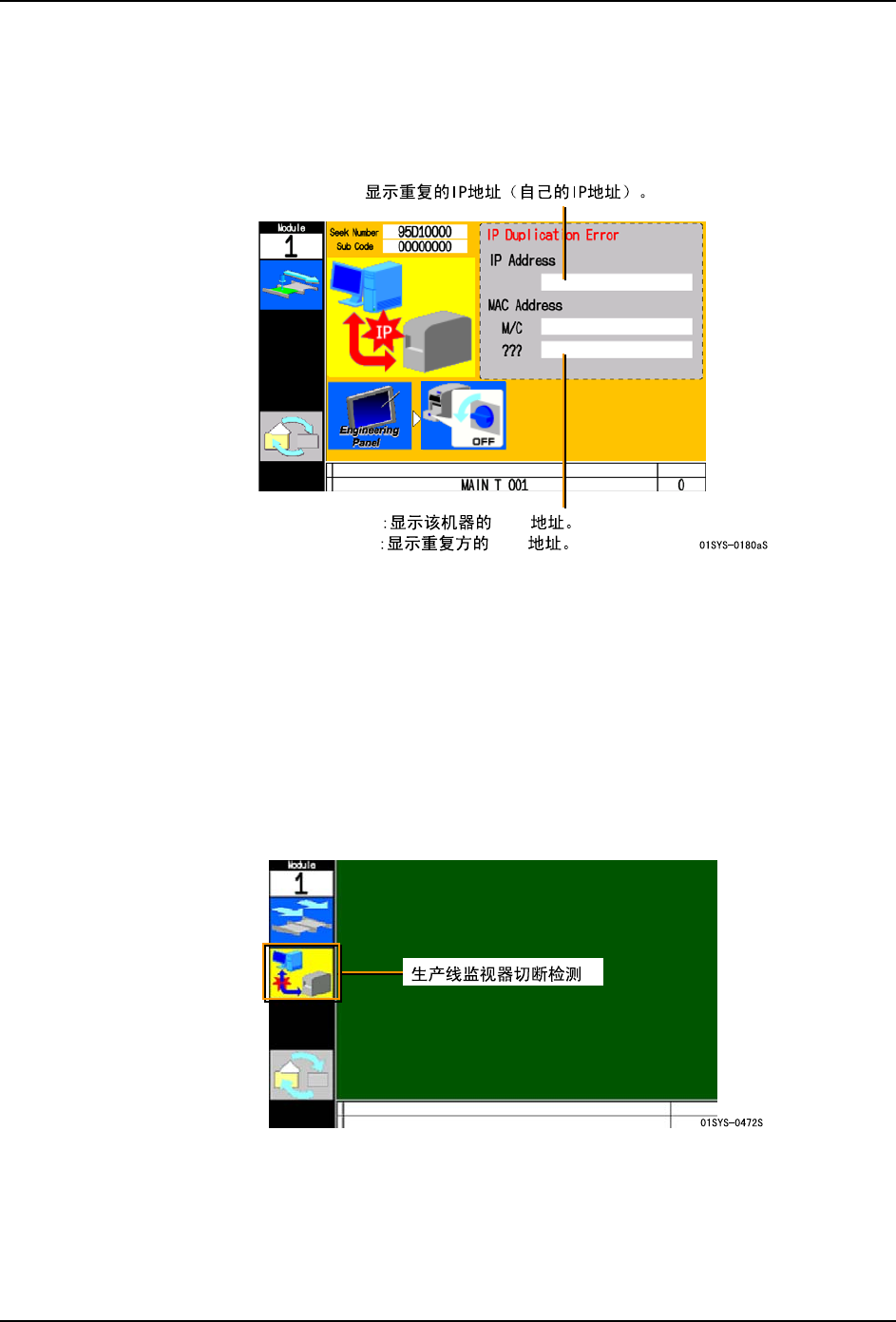所设定的 IP 地址在网络上被重复使用的时候,会显示出错误警告画面。在运转中,机器会