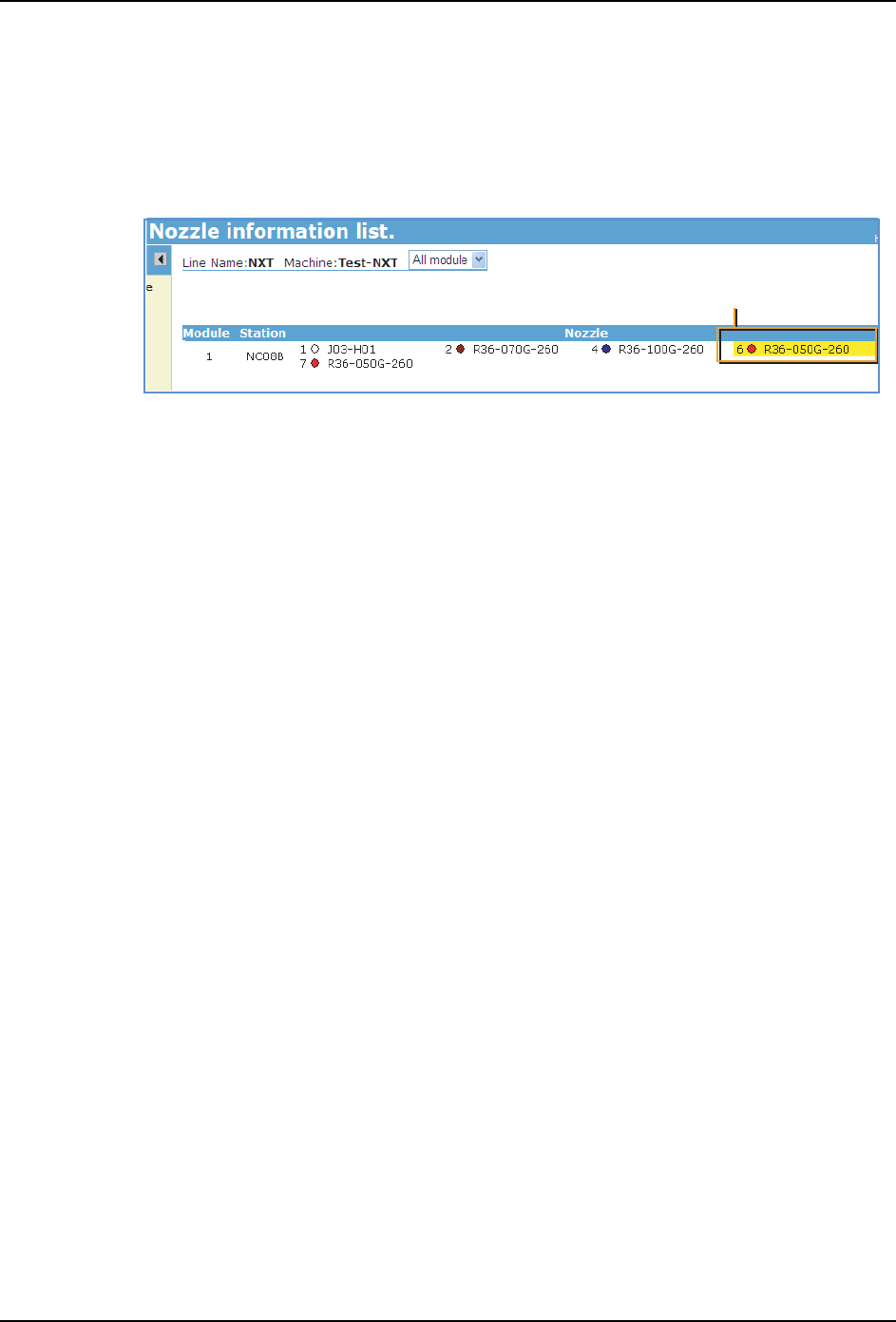 2. 在 Nozzle Information List 中确认需要维修保养的吸嘴。以高亮度显示的吸嘴别名为