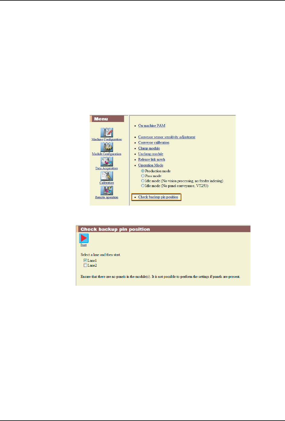 1. 辅助软件的 [Remote operation] 画面上,请进行支撑销配置确认模式的设定。