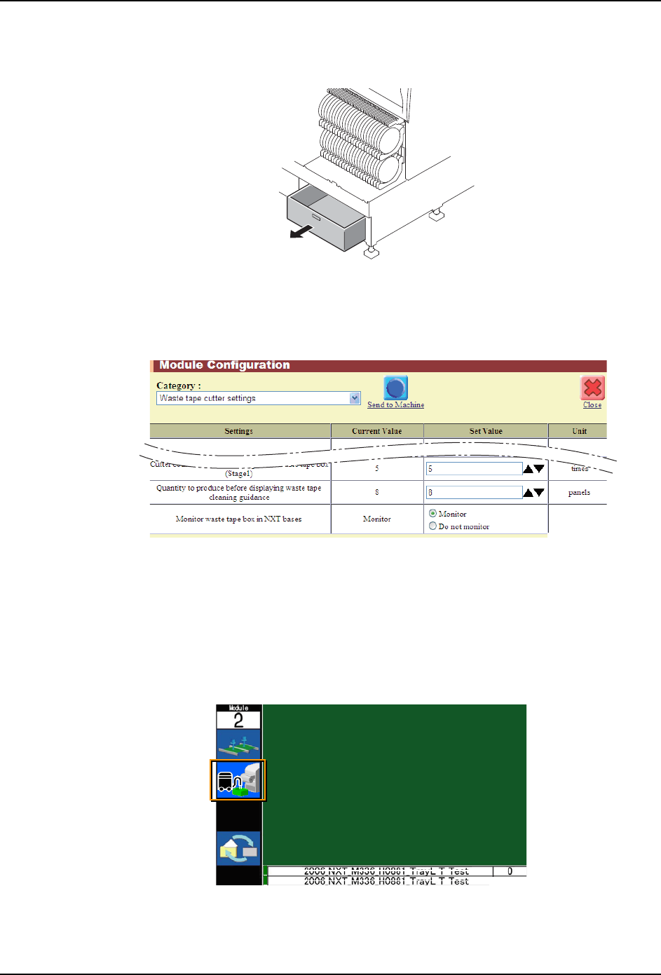 2. 当完成所设定的电路板块数的生产时,就会在操作画面上显示废料带箱清扫向导。