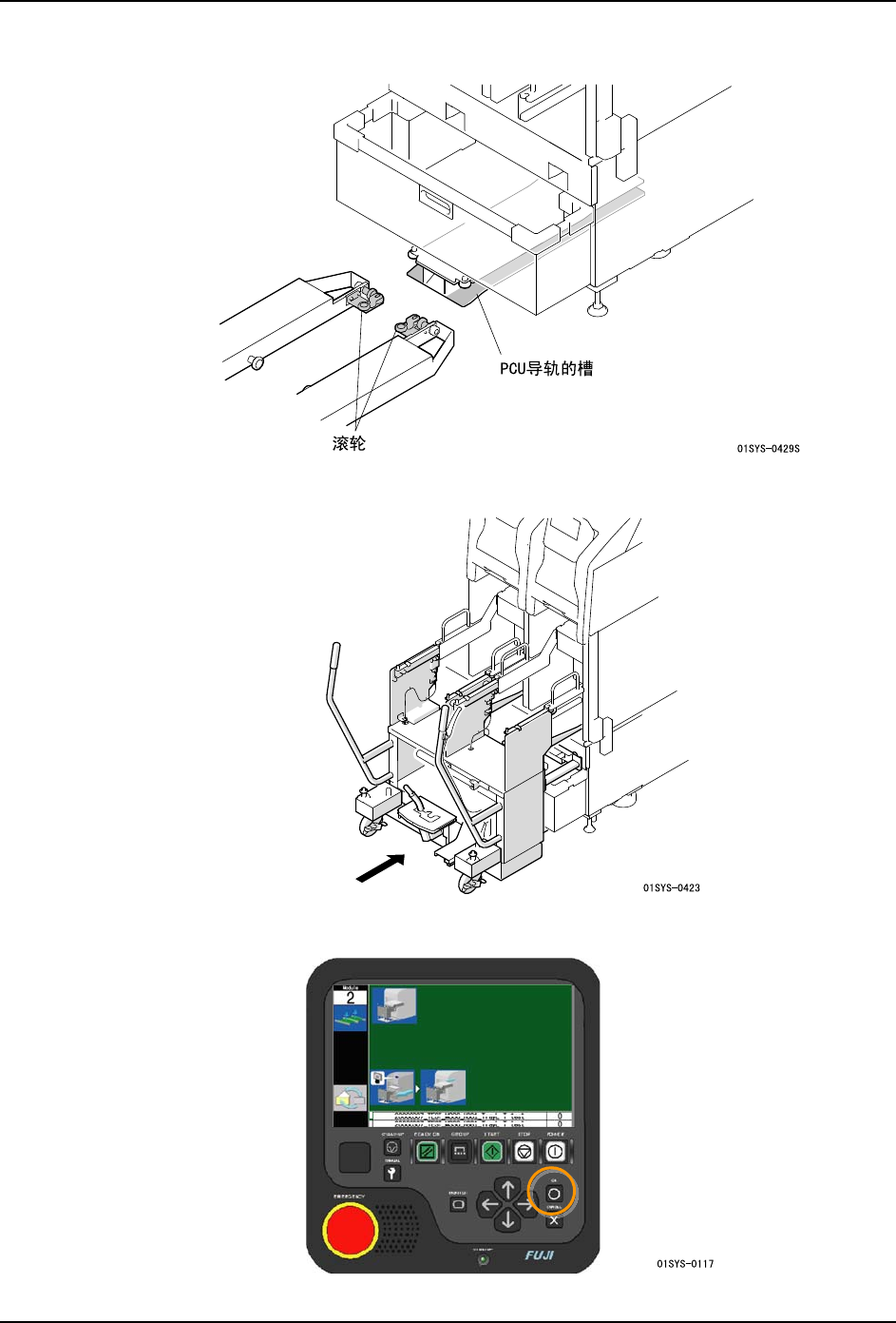 2. 请将 PCU-2 前端的滚轮慢慢地插入 PCU 导轨的槽内。