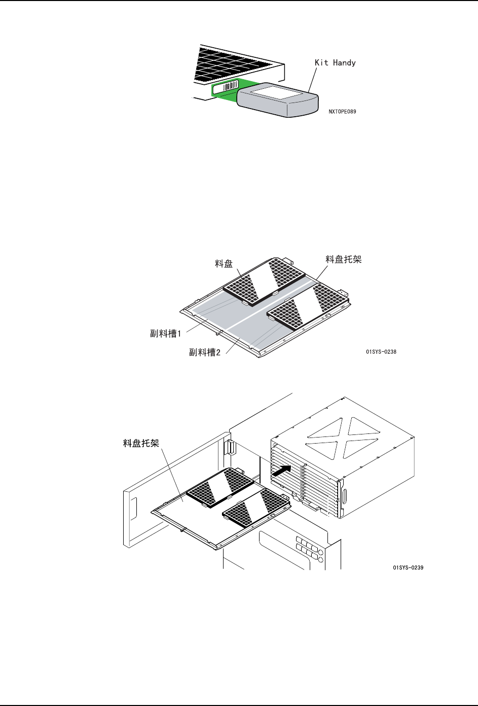 注意 )在将料盘托架安装到料盘箱内时,在不产生冲击下将料盘托架放入最里面。