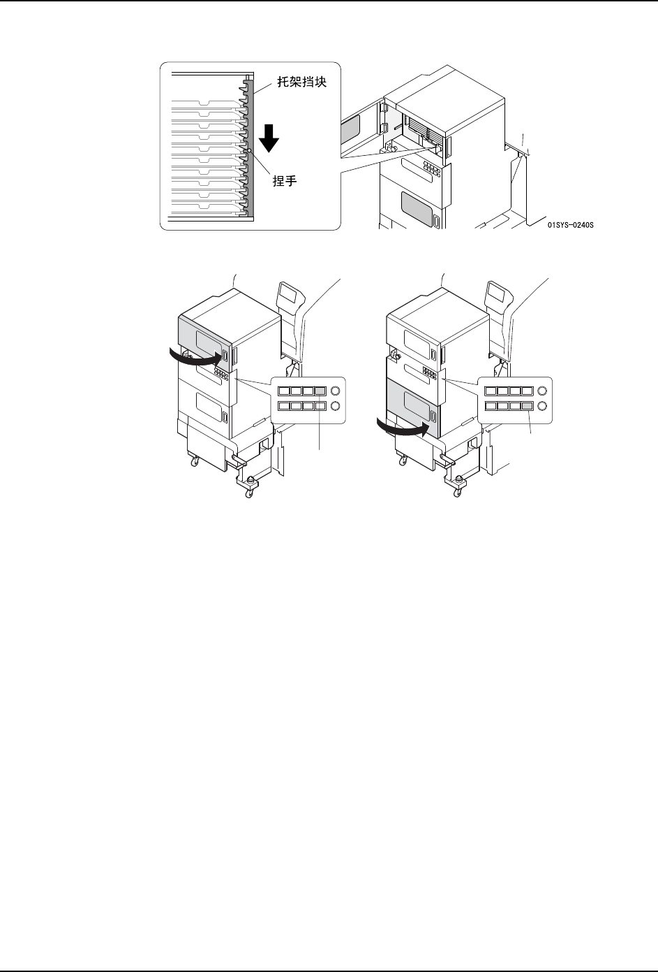 备注 )即使在托架档块处于下降状态时也可以半拉出料盘托架。此为便于操作员确认元件状