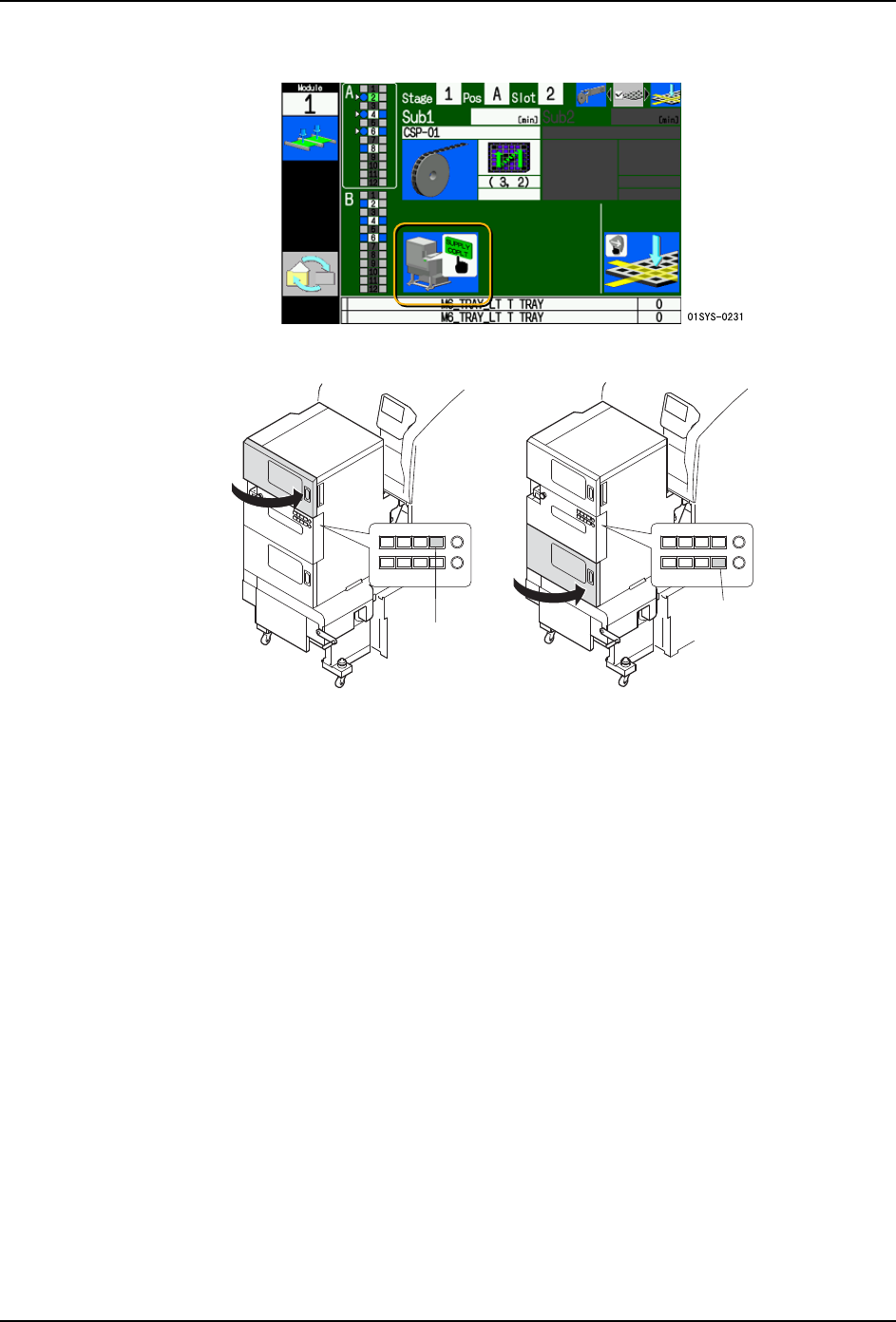备注 )轻轻关闭正面门,以免料盘单元 -LT 受到冲击。
