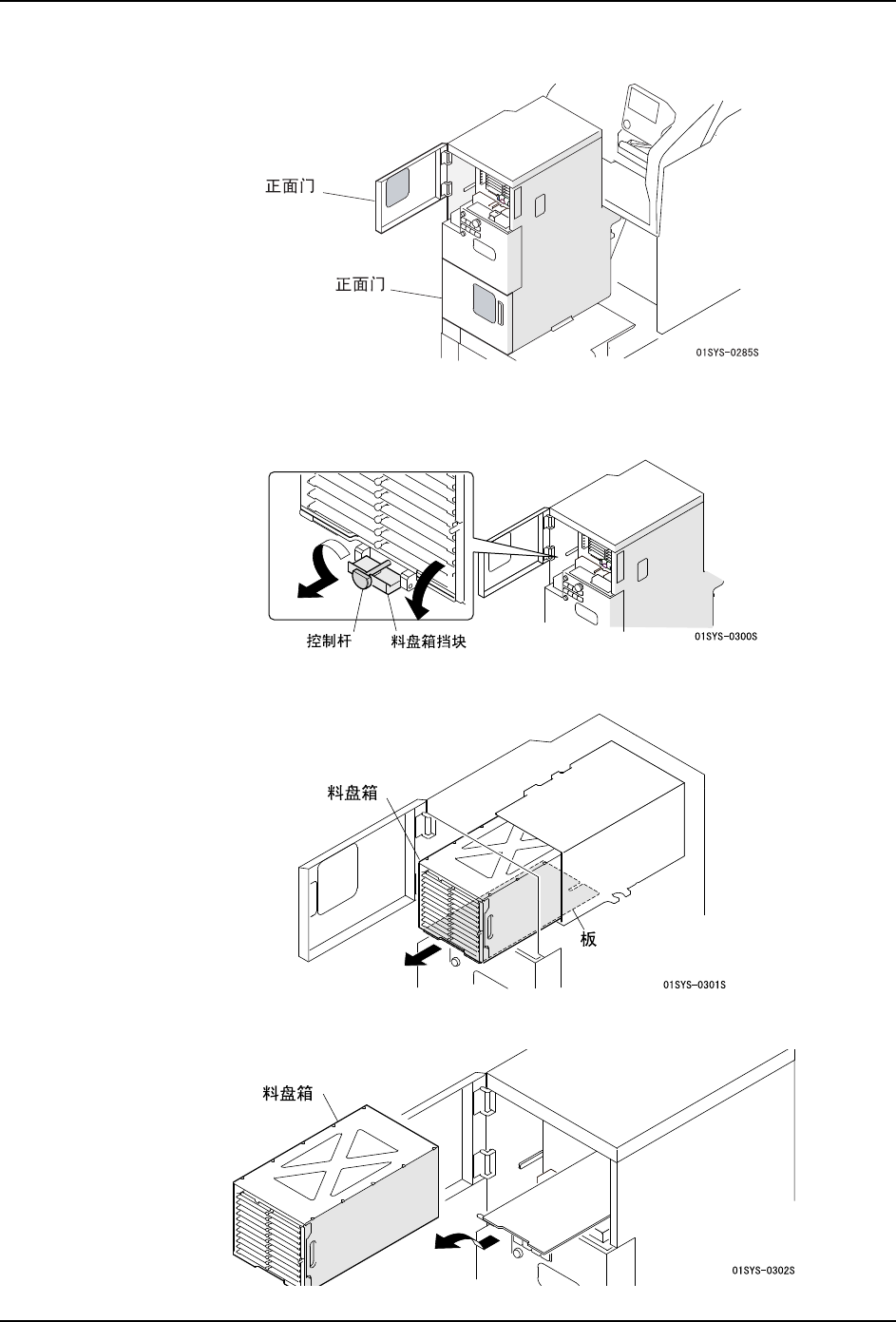 更换时,请务必注意不要使料盘箱落下。料盘箱落下不仅有可能造成机器