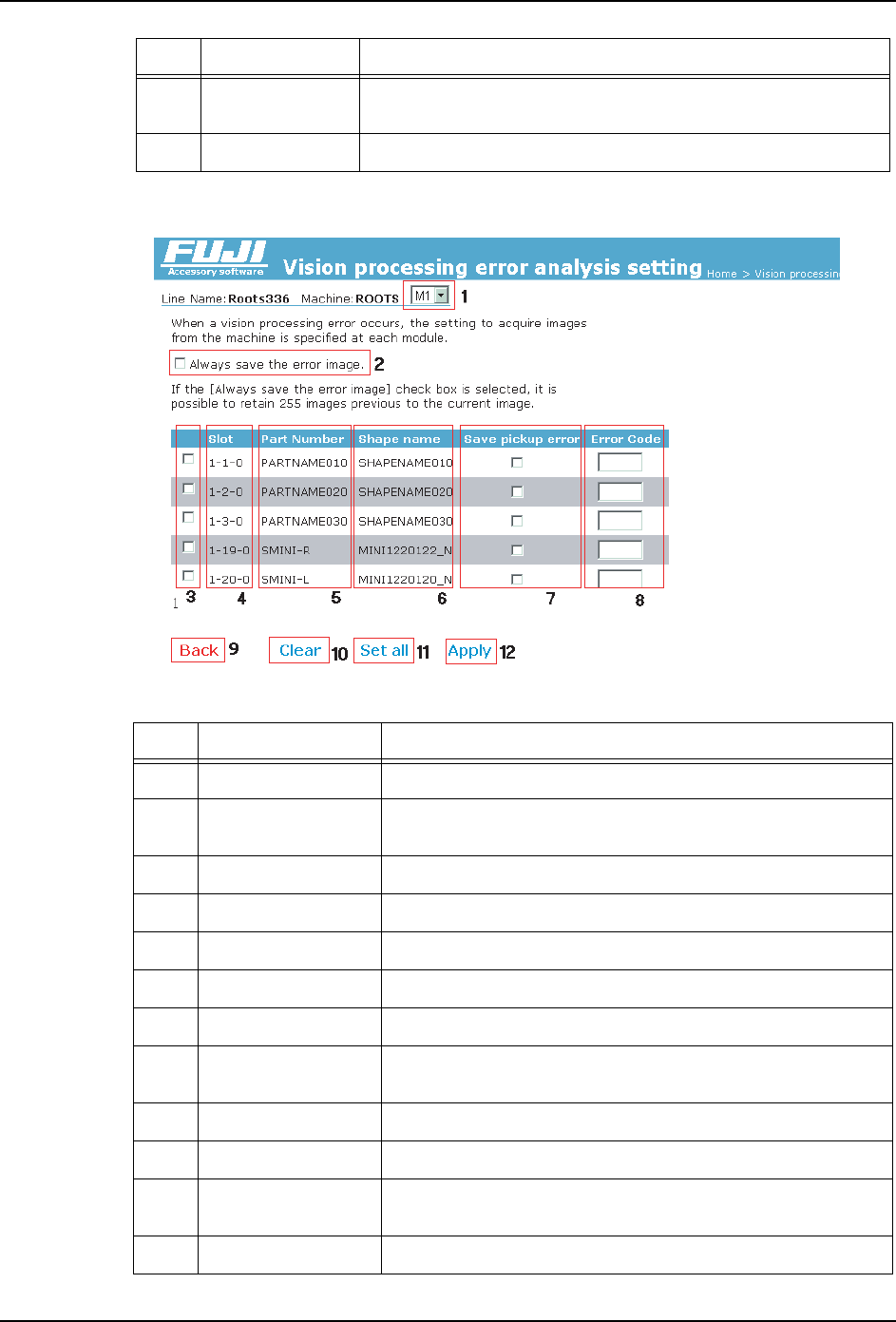 10 形状名 显示发生影像处理错误的元件的外形数据名。