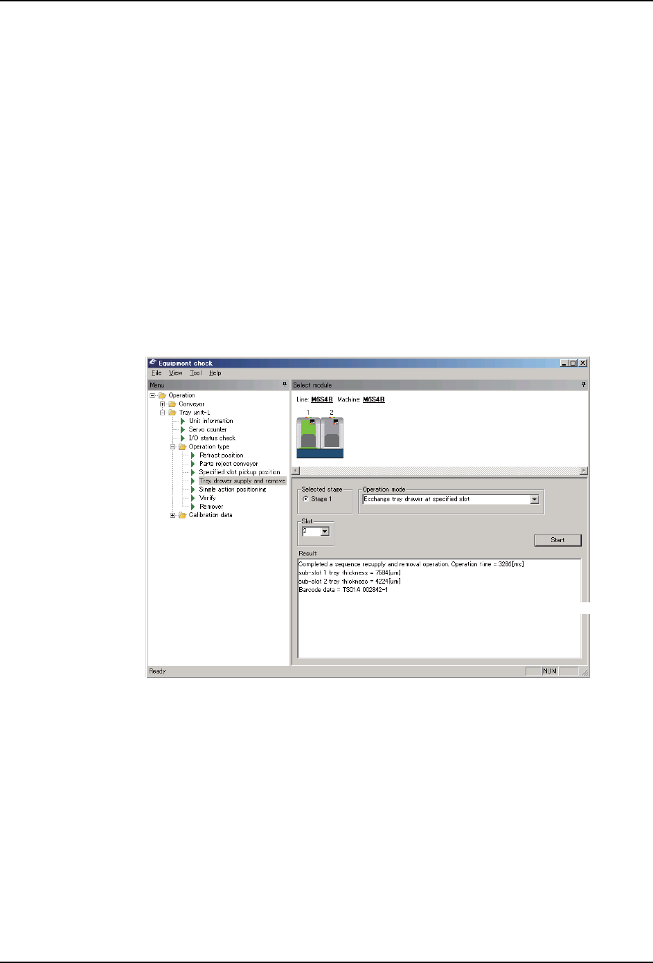 2. 请从 [Menu] 框内选择 [Operation]-[Tray unit-LT( 或 LTC)]-[Operation type],接