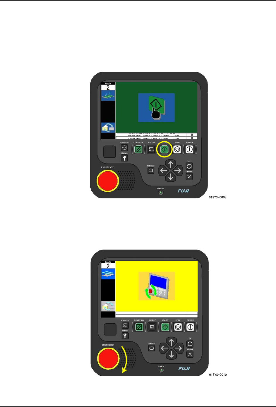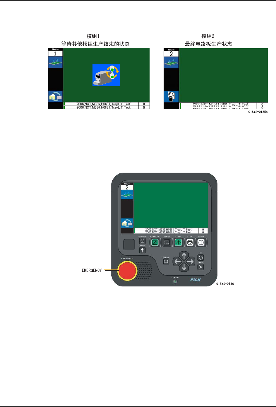 备注 )再次按下显示出 “STOP” 示意图的模组的 STOP 按钮后,停止指令被取消,进入通常