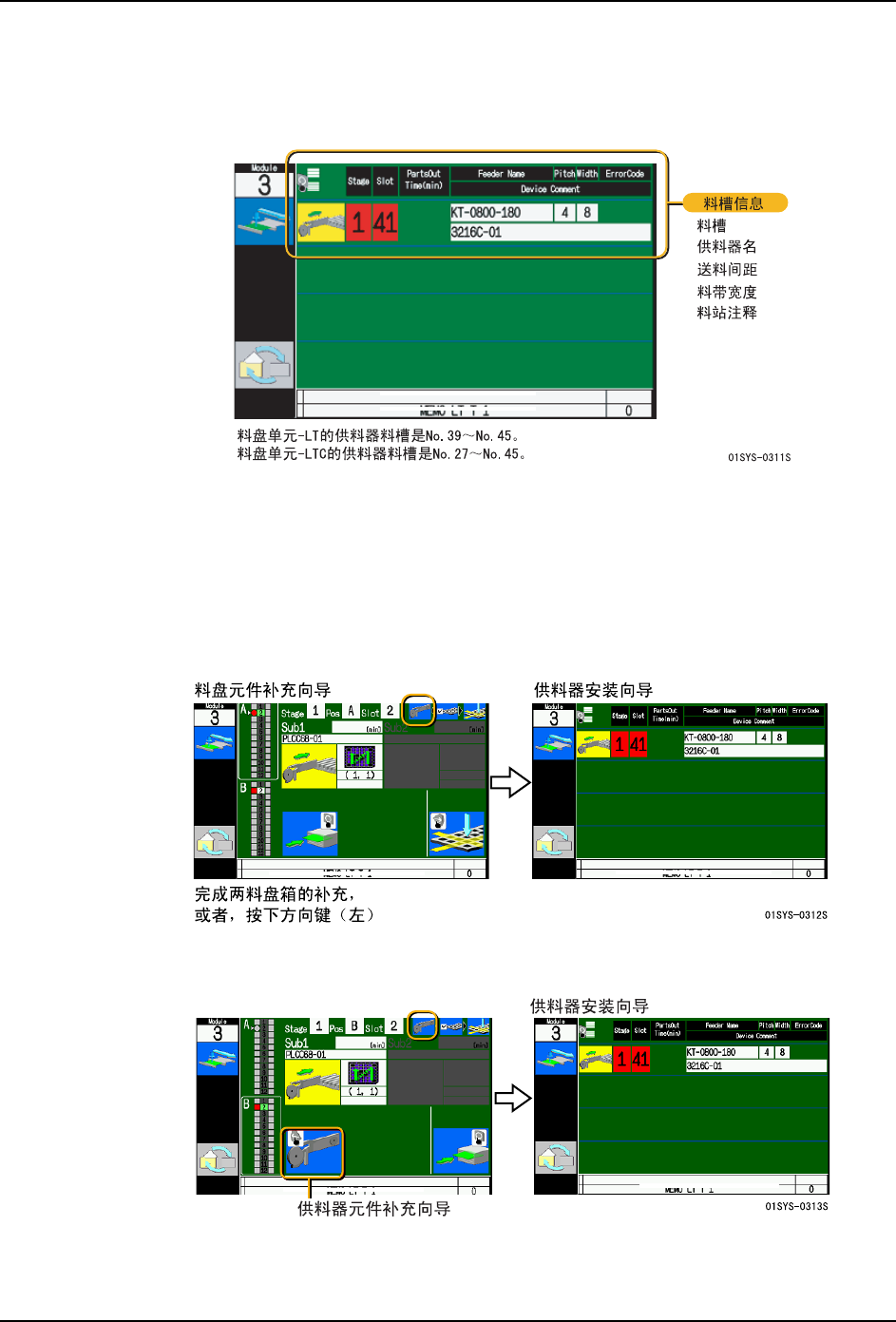 安装供料器后,当按下正门的安装按钮时,就会在向导画面上显示安装结束的料槽信息。再