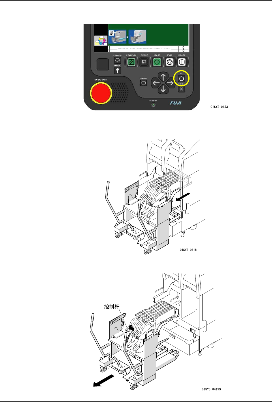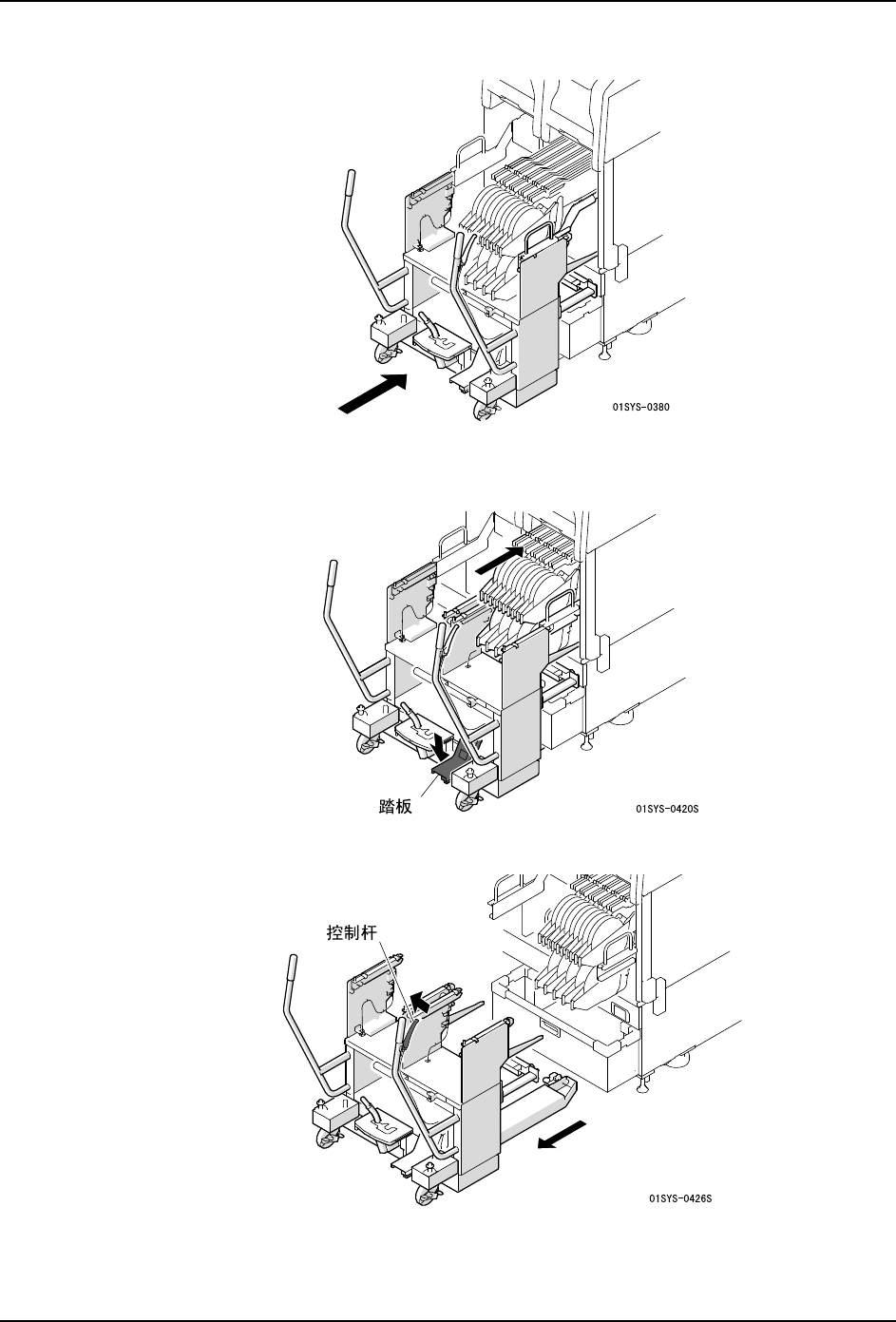 5. 请握住控制杆缓慢地拉出 PCU-2,卸下料站托架。