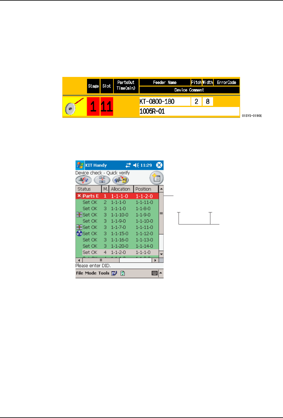 2. 使用 KIT Manager 或 KIT Handy 进行验证。(在将供料器安装到料站上的时候,机器会判