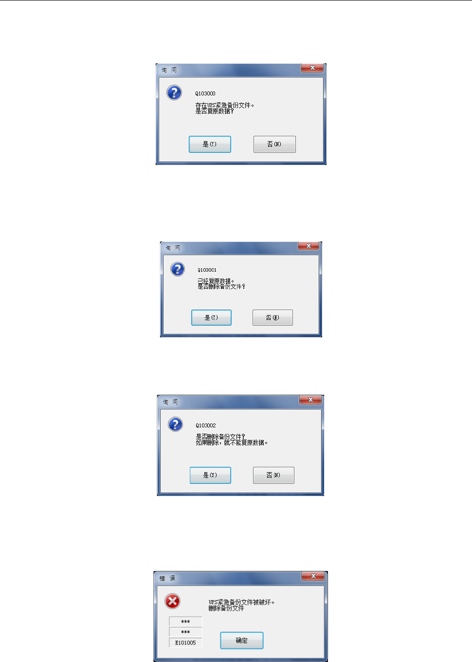 (1) 检测出停电对策用的保存文件时的确认显示