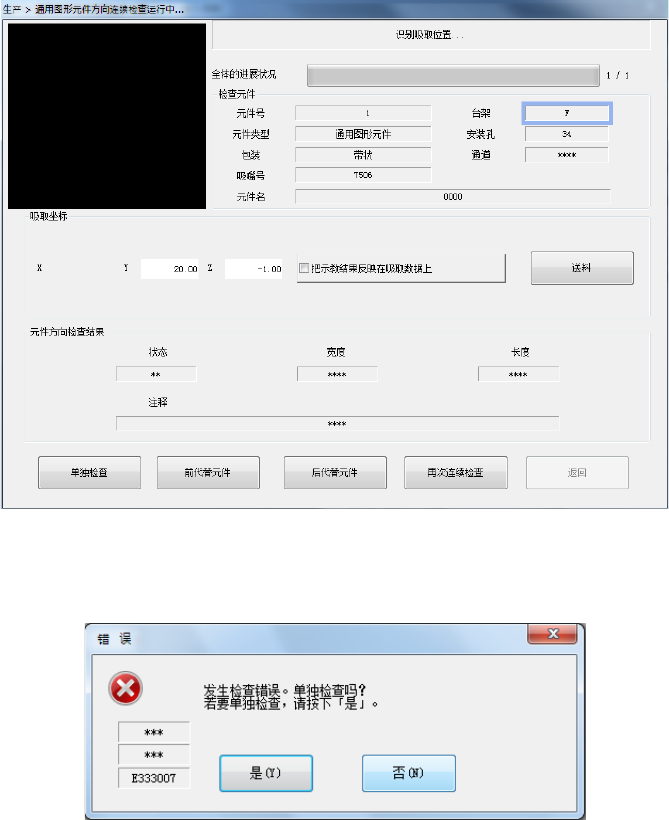 对发生检查错误的元件,要单独检查时,请按[是]。