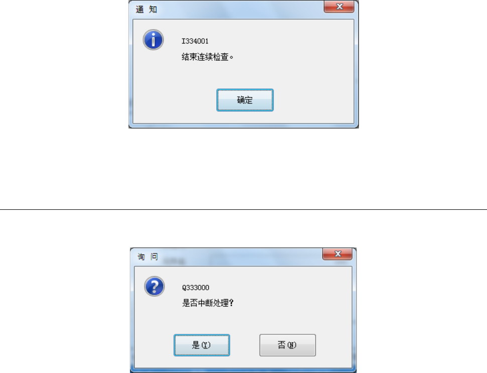 要强制停止时,按下<STOP>开关,则显示以下的信息框。要结束检查时请选择[是]。