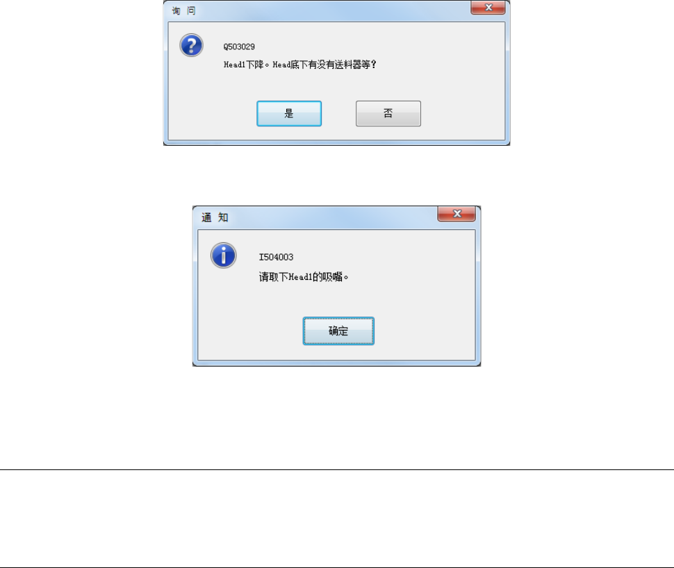 Z 轴下降后,就会显示取下吸嘴的指示提示信息。