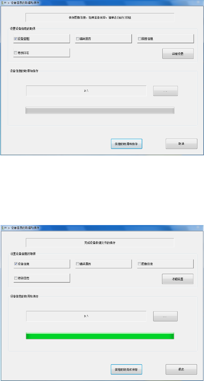 ③ 按[信息的取得和保存]按钮取得设备信息,并将取得的文件进行压缩后保存。