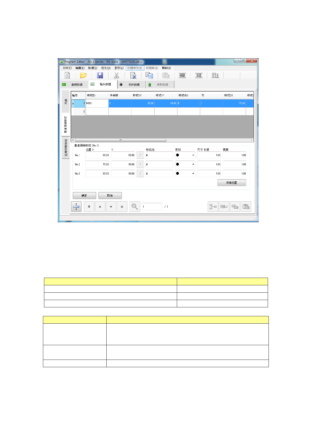 在注册标记时,将光标移动到未输入的行,输入标记的X坐标、Y坐标后,通过标记示教,或从