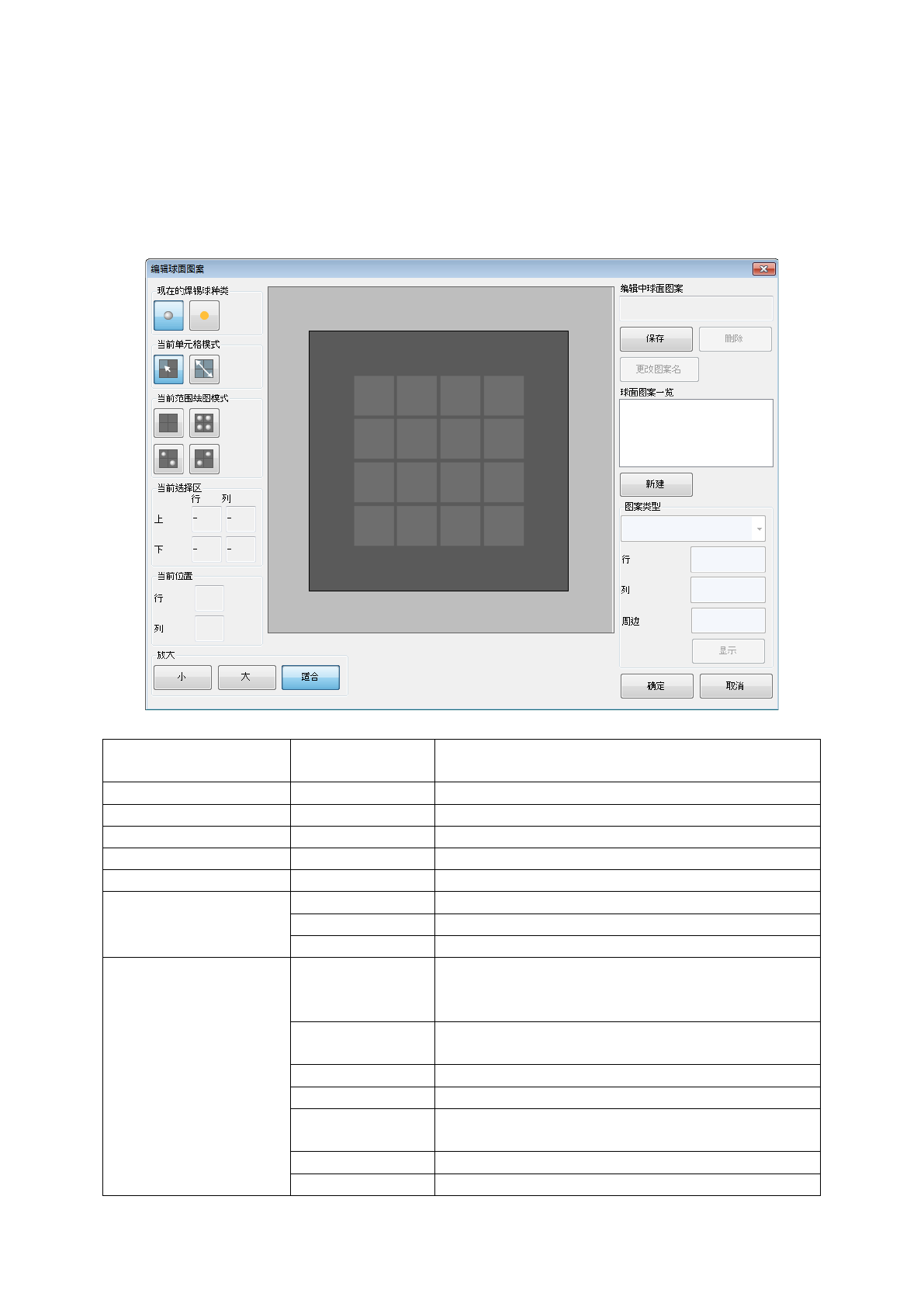 球面图案列表 显示已注册的球面图案。