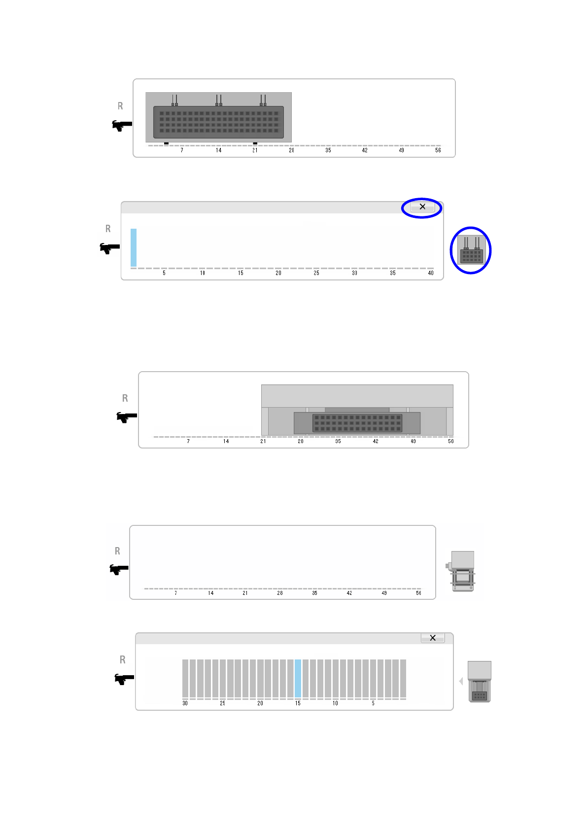 勾选操作按钮的「贴片头图像」按钮时,即可显示点击送料器分布画面时的贴片头图像,显示浅蓝色