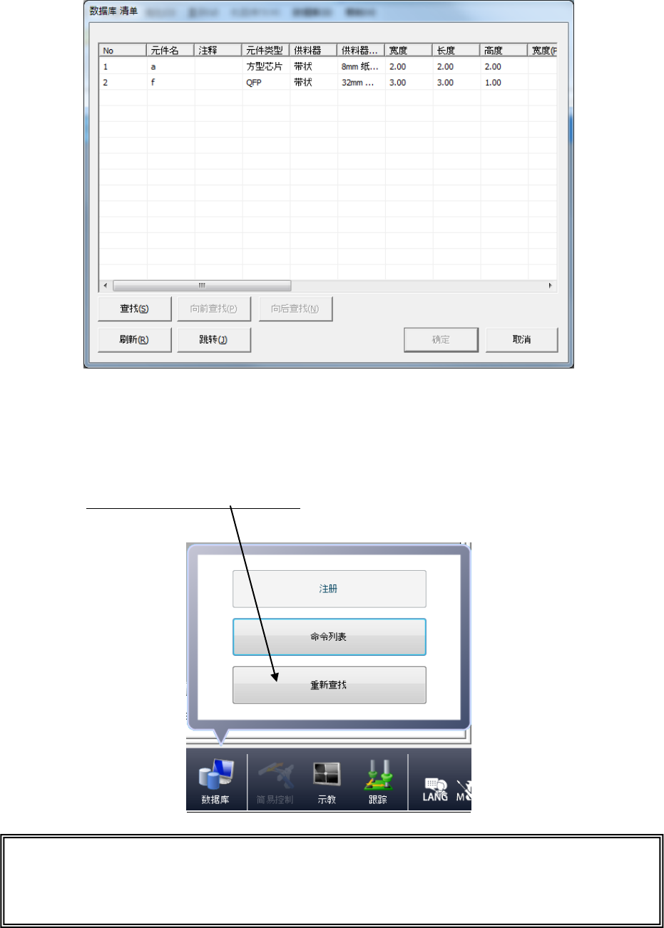 每执行一次“重新查找”,即对贴片数据中的所有元件名进行一次核对、注册 (覆盖)。