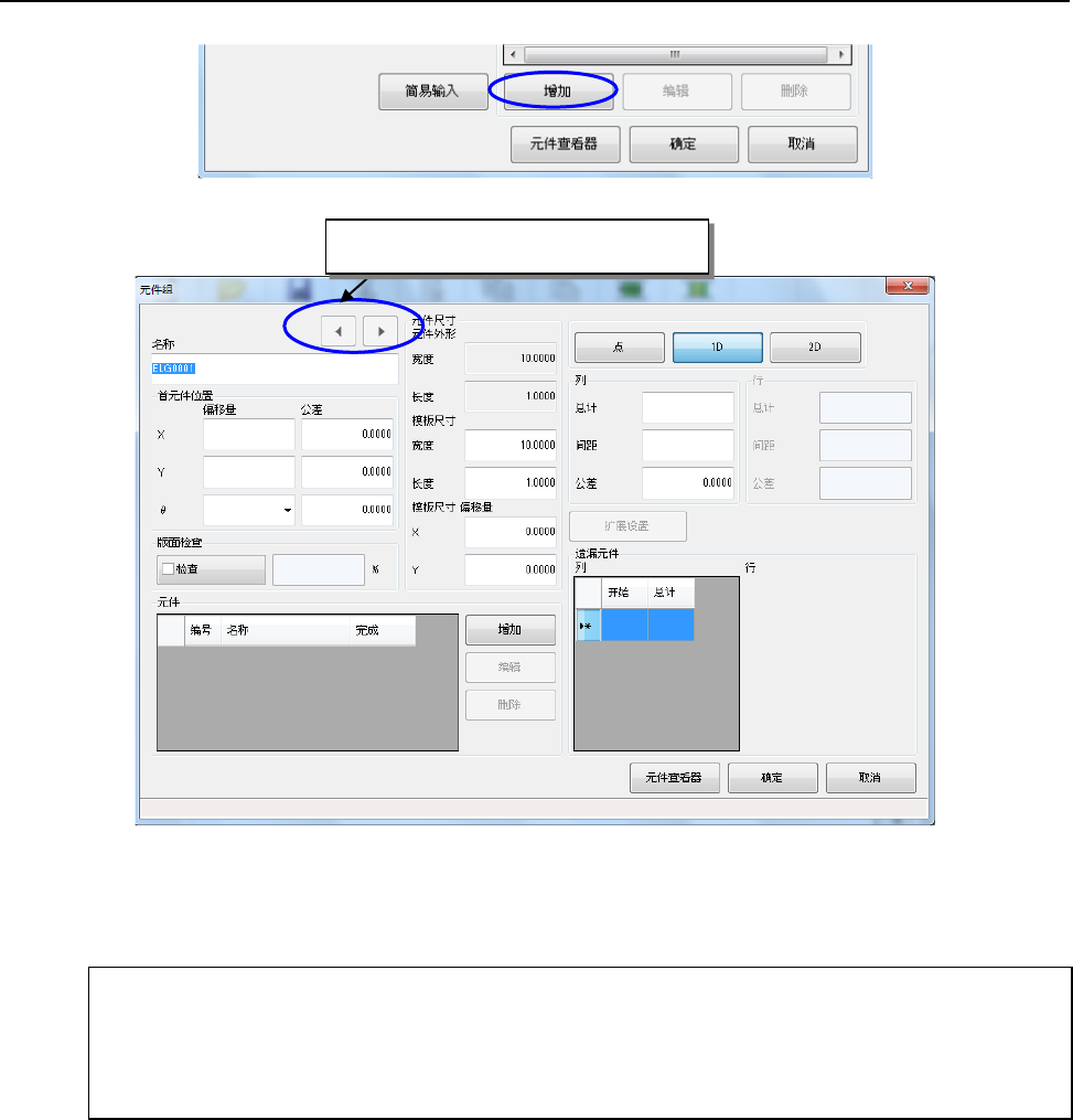 在元件要素数据设定画面中点击“增加”按钮,即会显示元件要素组制作画面。