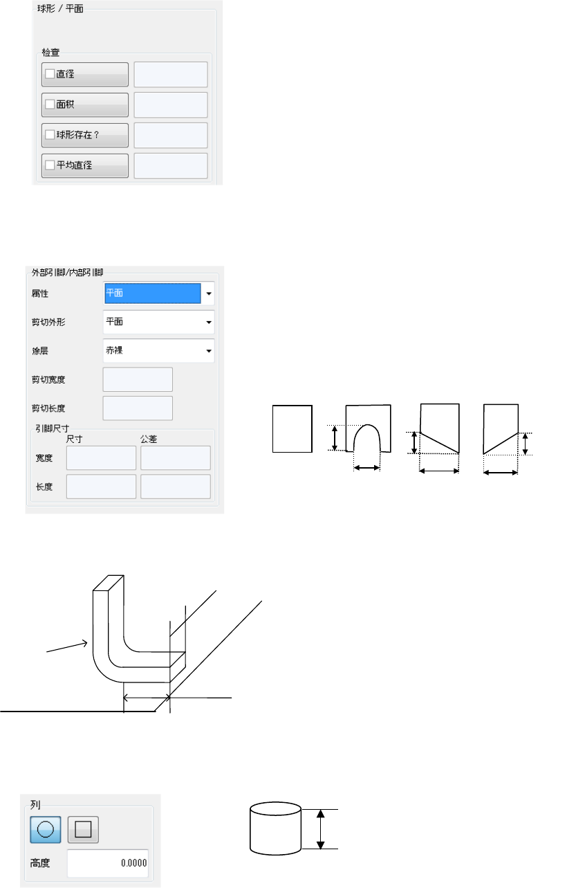 当使用鸥翼形引脚时,输入与基板接触的引脚前端部位的宽和长。