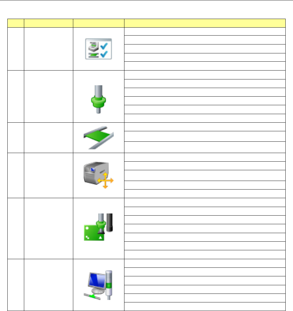 第 2 部 功能详解篇 第 8 章 机器设置 8-4 8-3 设定项目 机器设置中的设 定项目分为以下 各组。 No. 操作组 显示按钮 设定项目 ( 操作 ) 1 使用 单元 Hea d 基本 传送 MTC/M TS VCS 2 吸嘴 注册吸嘴一览 读吸嘴数据 AT C 吸嘴分配 无吸嘴时真空值 读 AT C 数据 ※仅 RS - 1R AT C 设置 ※仅 RS - 1R 3 传送 基板传送 支撑台 外形基准位置调 整 4 位置设定…