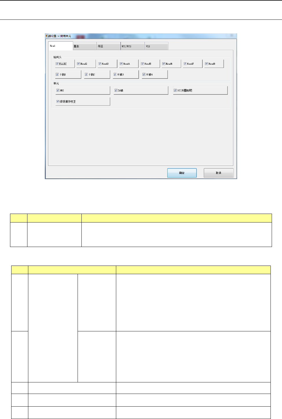勾选后,以下所示的对应贴装头也一起不可使用。