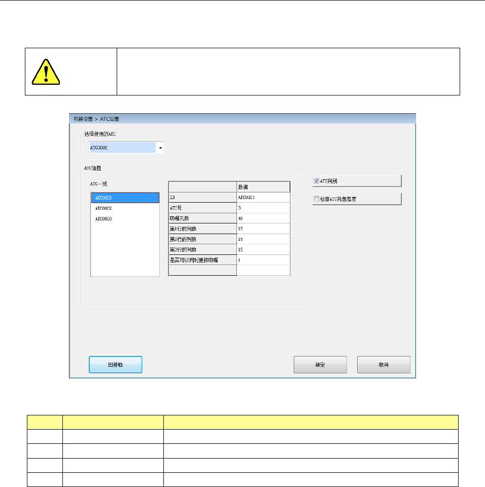 同时,更换 ATC 托盘时,请务必在本画面进行 ATC 托盘的设置。