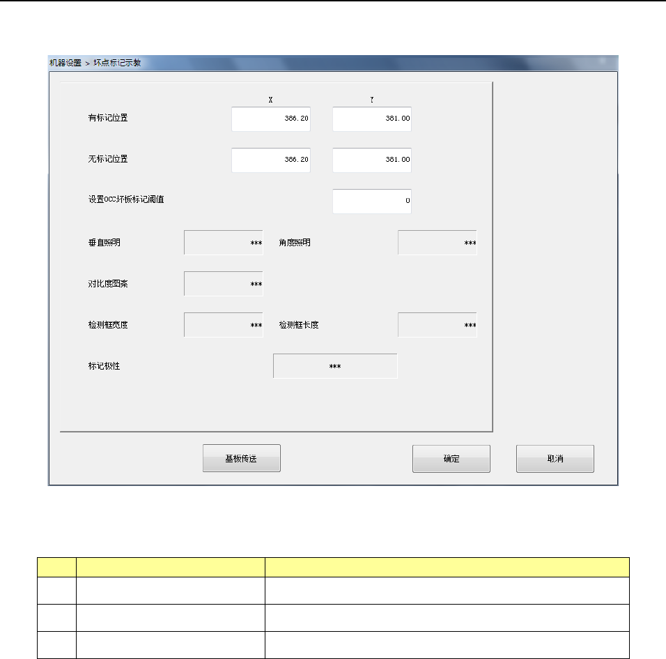 有标记位置 坏板标记中心位置的 X 坐标、Y 坐标