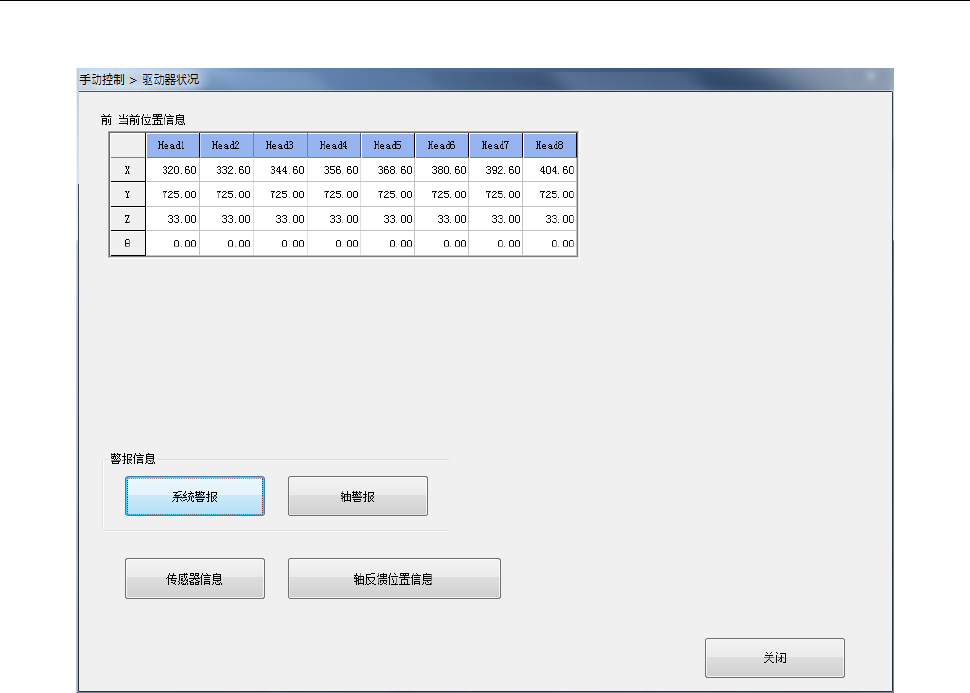 在驱动器状况对话框里,按下[轴反馈位置信息]按钮,即可显示轴反馈位置信息。
