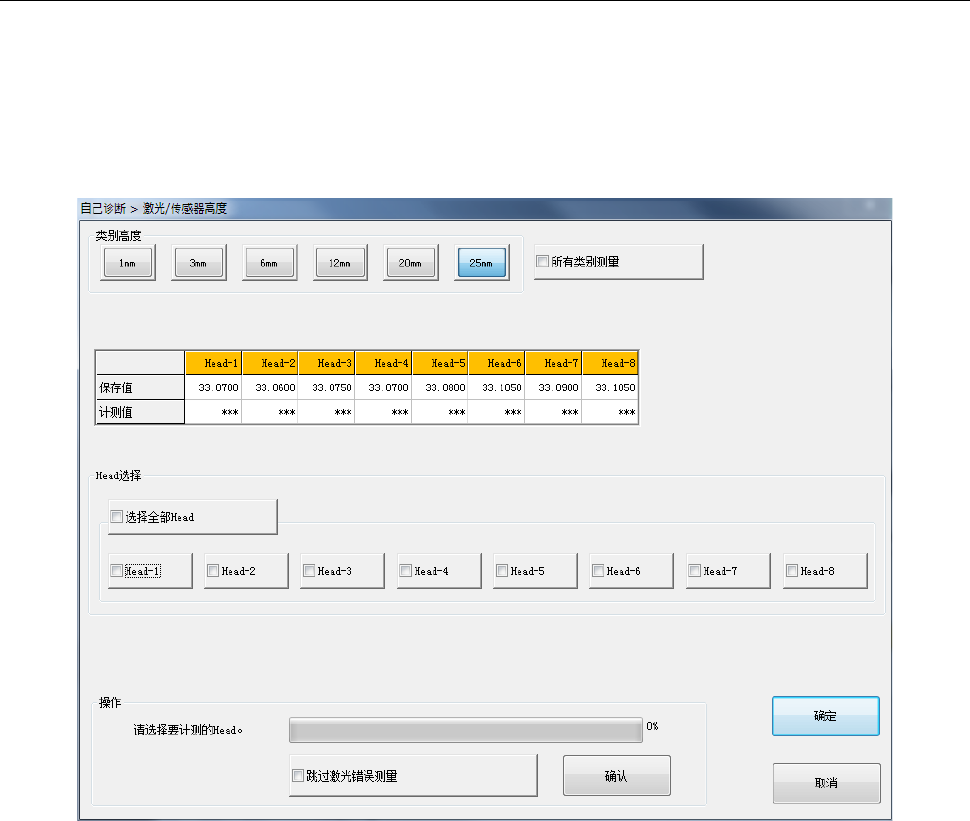 按[确认]按钮,各 Head 单元即移动到等待位置开始测量。