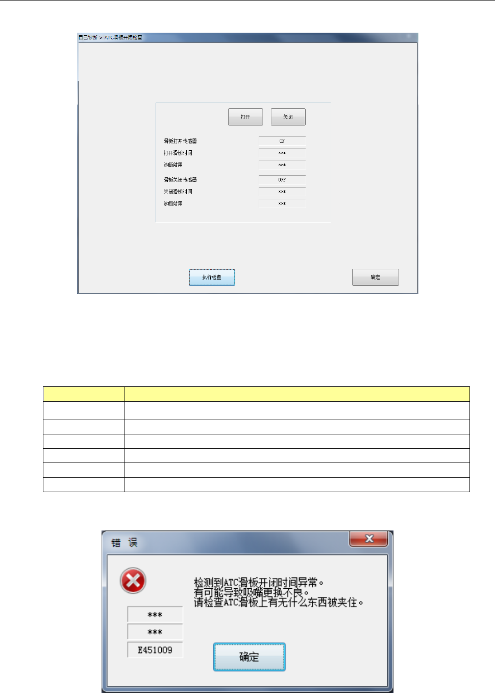 ATC 滑板开闭检查出现错误时,会输出如下信息。