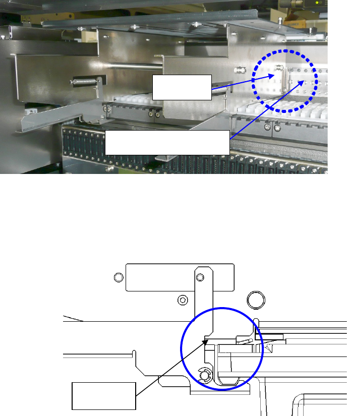 第 2 部 功能详解篇 第 12 章 选项组件 12 - 12 托盘支架交换方法 1) 把滑轨前端处插 入后侧台架的导 轨槽。 2) 把托盘架插到中 间,握住侧面板 及锁架,打开 锁架。 滑轨前端 导轨 侧面板 锁架