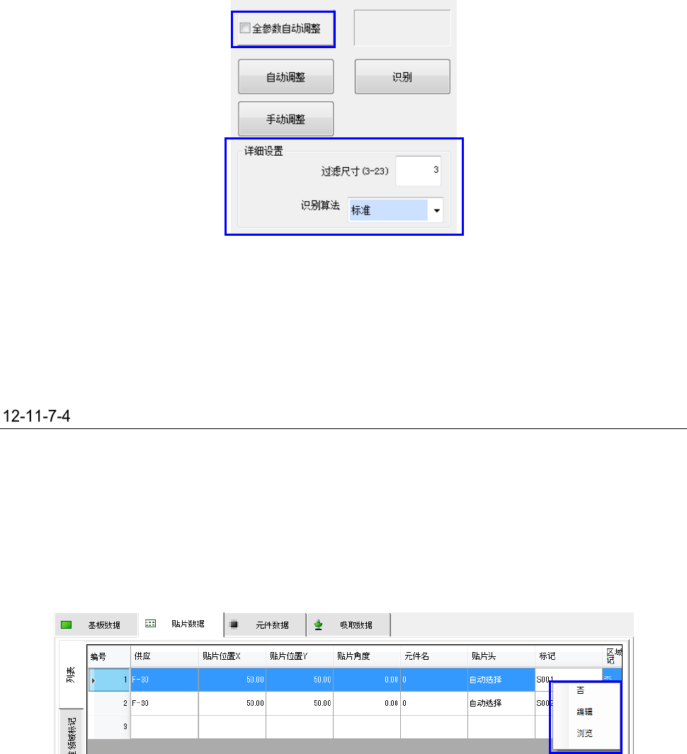 第 2 部 功能详解篇 第 12 章 选项组件 12 - 67 (4) 详细设置 在 [ 识别焊锡 标记的条件设置 ] 画面 上,可进 行焊锡 识别的详细设置。 选中 [ 全参数自动 调整 ] 进行自动 调整时,照明 、阈值、对比度 图案会一边变 动,一边进行全 部 图案的组合识别 ,自动调整。 在 [ 识别焊锡 标记的条件设置 ] 画面 上进行 [ 自动调整 ] 后, 若识别仍然不 稳定时, 请使用本项功 能。 设置贴片校正 在把光标…