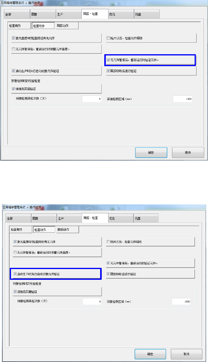 选择了「拼接后执行验证」时,可以设定「拼接检测误检次数(次)」、「 拼接检测区域(mm)」。