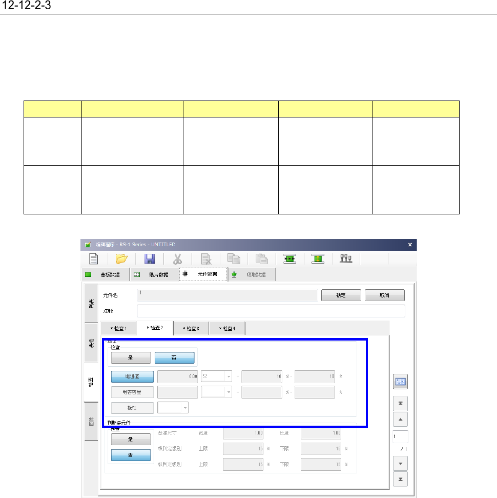 在「元件数据」的“检测”中设置是否执行元件验证以及检查的判定值。