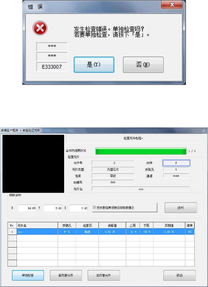 选择<是>,按下[单独检查]按钮后,即进行单独检查。