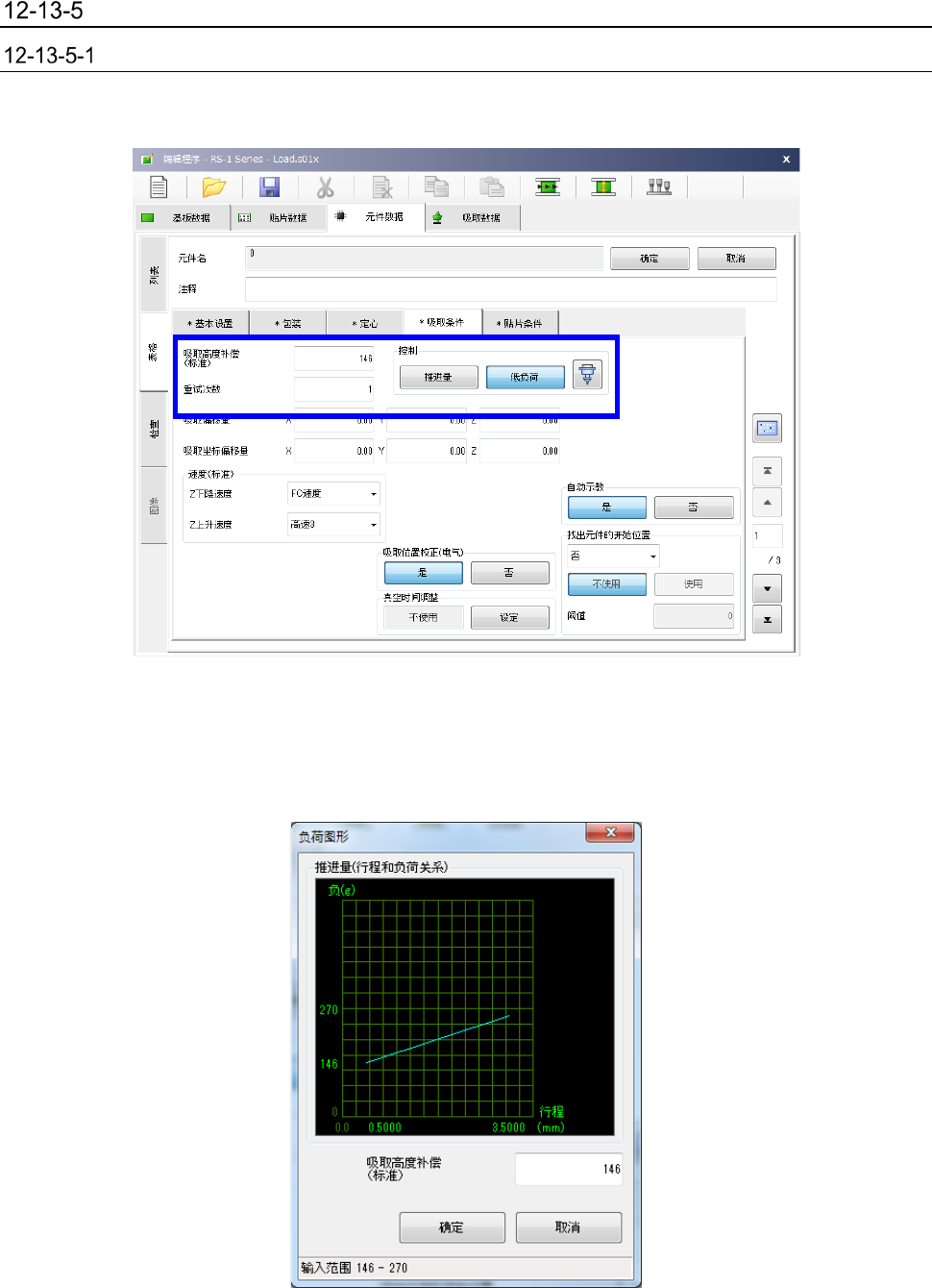 对于低负荷控制用吸嘴,图形按钮会变为显示开启,按下图形按钮后,即显示推进量(行程)和负荷值