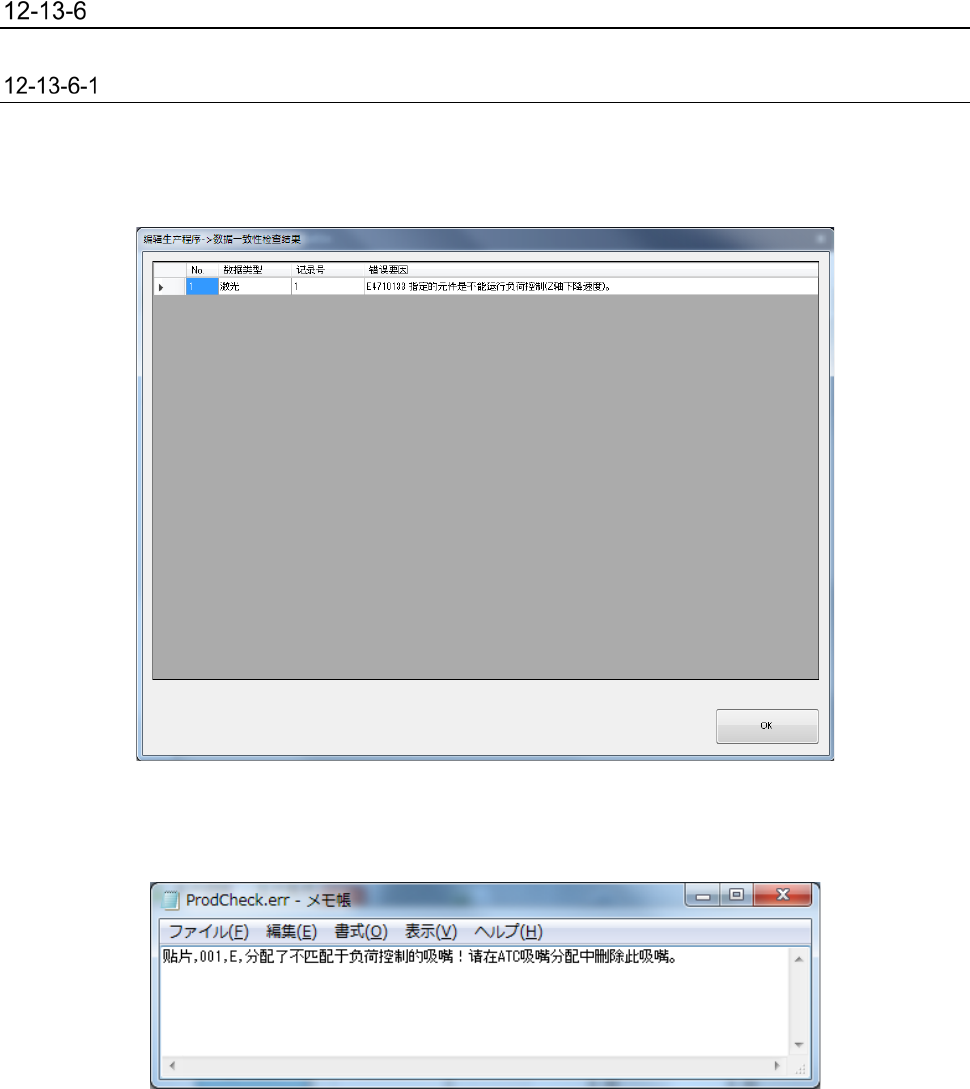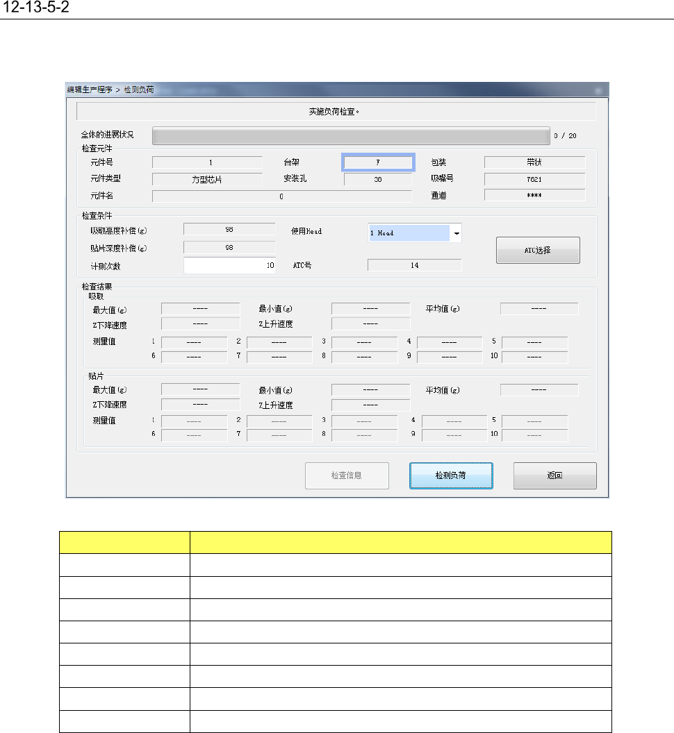 第 2 部 功能详解篇 第 12 章 选项组件 12 - 86 编辑辅助 请启动「 编辑程序 」 , 选择 「元件数据」 ,从 「测量 · 检查」 中选择 「负荷 检查 」。 项目 内容 检查元件 显示进行 负荷检查的元件 内容。 检查 条件 显示 负荷 检查 时 的检查条件 。 吸取 高度补偿 (g ) 显示 吸取 动作 时推进的 负荷 值。 贴片 深度补偿 ( g) 显示 贴片动作 时推进 的 负荷 值。 使用 H ead 可选择进…